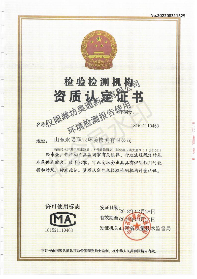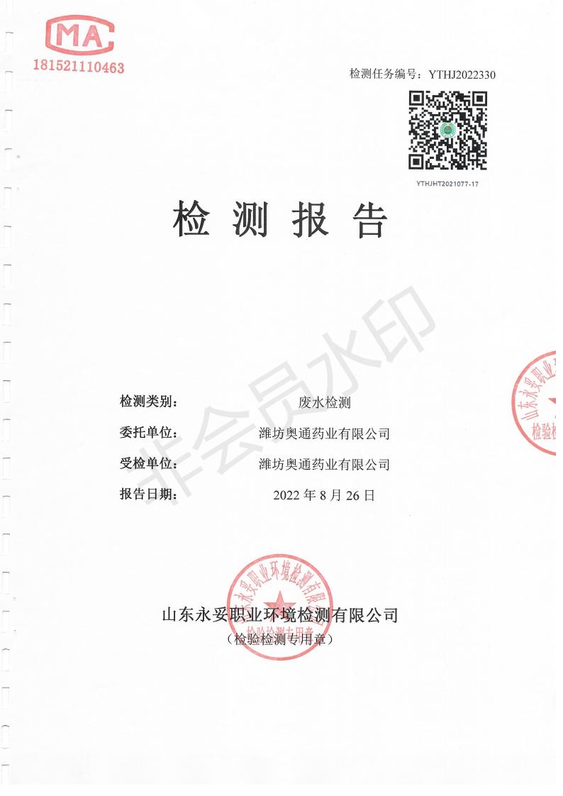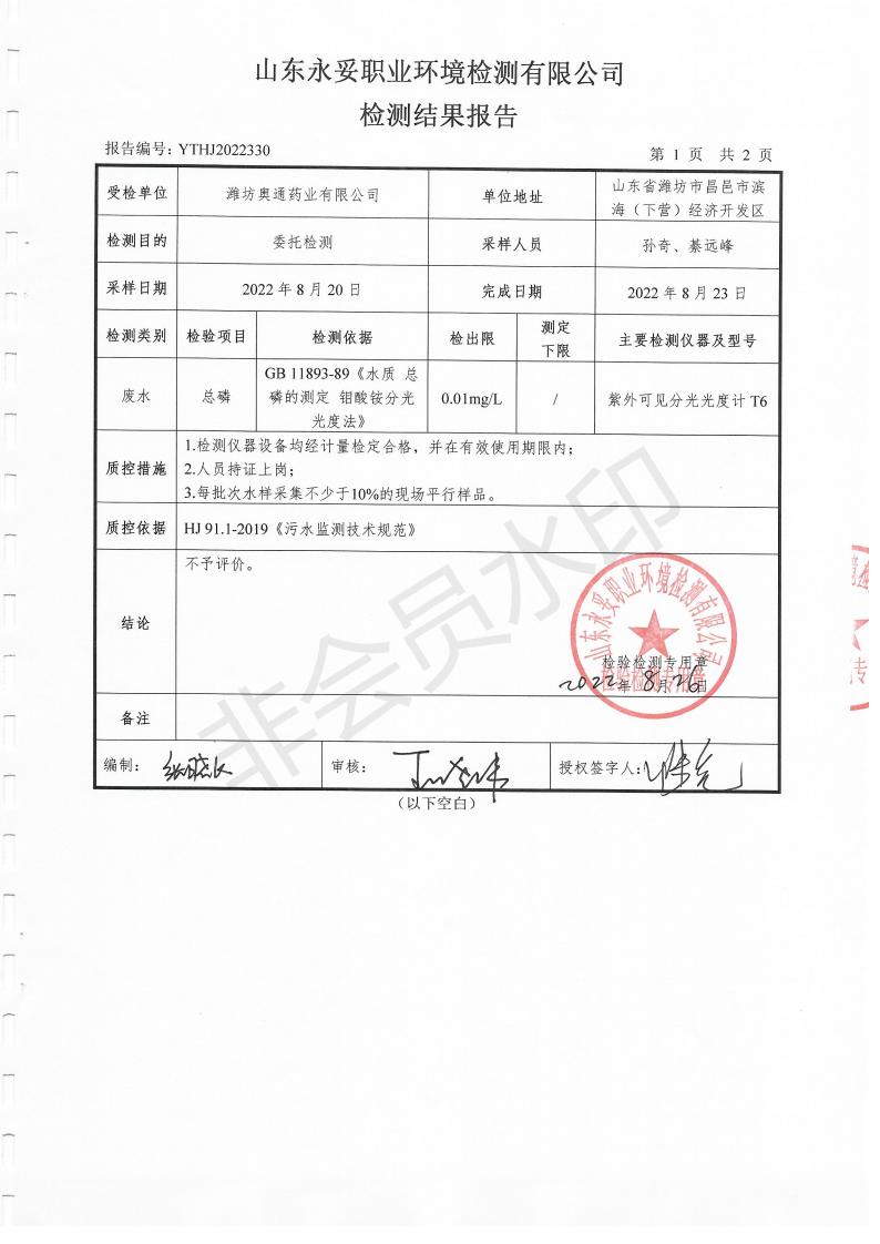 濰坊奧通藥業(yè)有限公司八月環(huán)境檢測報告