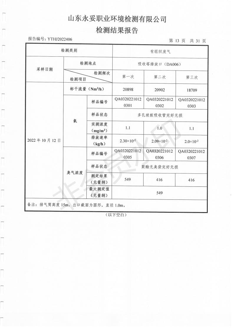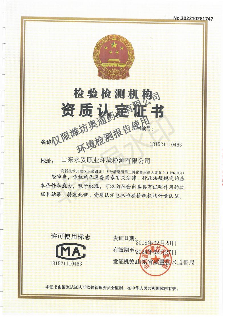 濰坊奧通藥業(yè)有限公司十月環(huán)境檢測(cè)報(bào)告