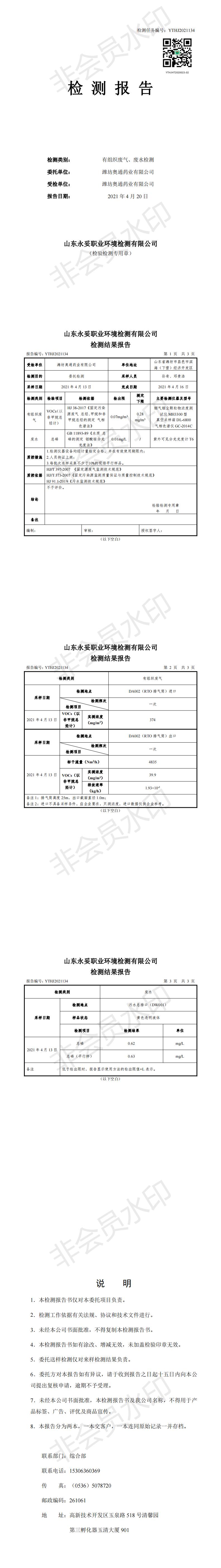 濰坊奧通藥業(yè)有限公司四月環(huán)境檢測報告