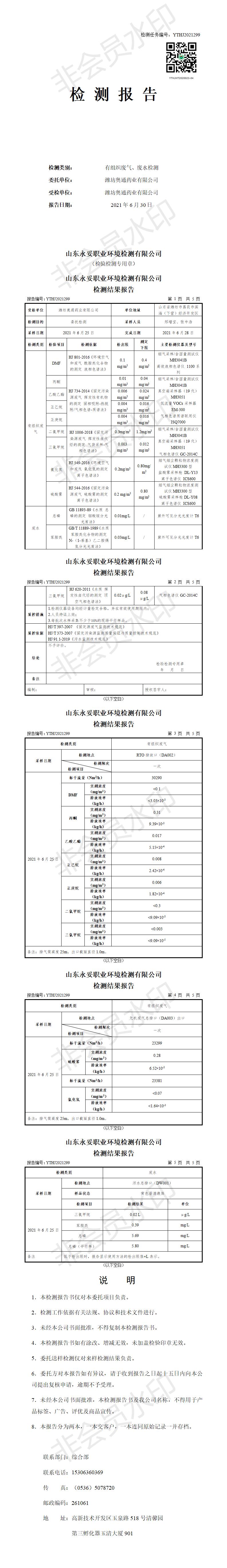 濰坊奧通藥業(yè)有限公司六月環(huán)境檢測報(bào)告