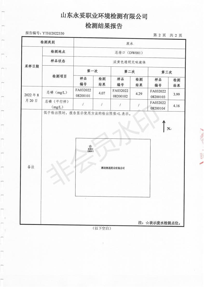濰坊奧通藥業(yè)有限公司八月環(huán)境檢測報告