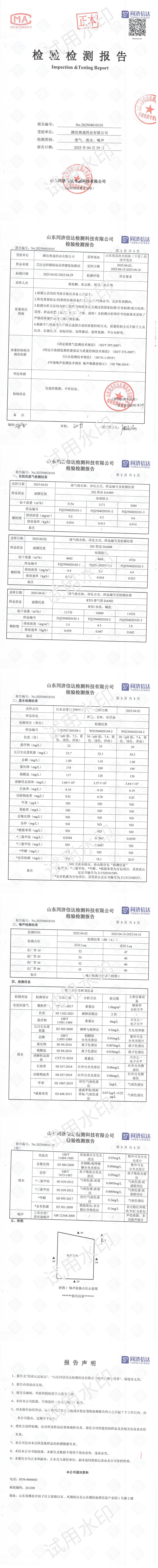 富祥(山東)新材料有限公司四月環(huán)境檢測報告